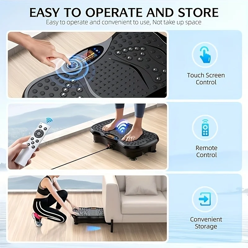 This compact vibration fitness platform is designed to deliver an effective full-body workout in a small space.